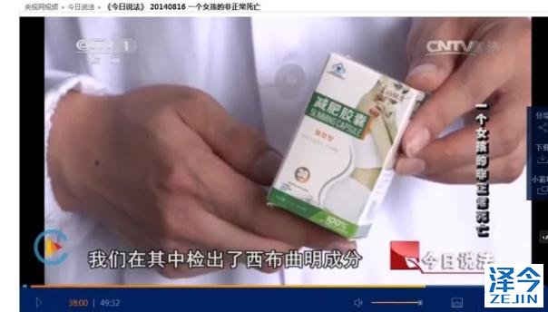 《今日说法》 关于非法添加西布曲明等违禁品的减肥产品导致消费者死亡的报道