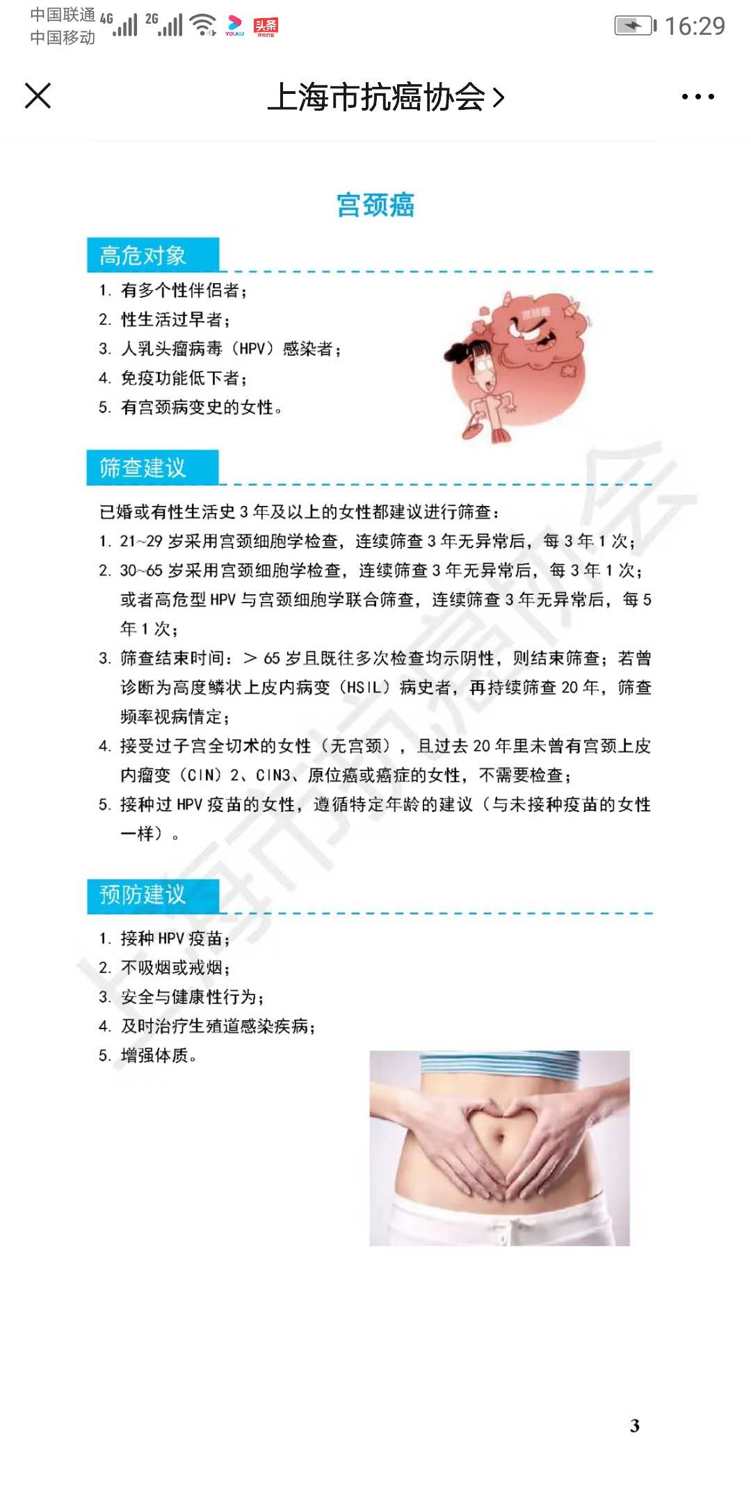 很显然症状只是判断晚期疾病一般的辅助手段而已,大多数癌症要真正确诊是需要借助更多科技手段特别是病理诊断才能确诊为肿瘤的,从预防疾病角度看,对于秦可卿们来说,无论宫颈癌还是卵巢癌,病因预防和早筛办法都是有的,下图就是上海市抗癌协会2020版的高危人群筛查建议和预防建议,大家赶紧收好:
