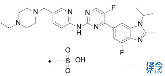 与来曲唑联合用于雌激素受体阳性(ER+)、人表皮生长因子受体2阴性(HER2-)的妇女晚期乳腺癌,是首个获批的细胞周期蛋白依赖激酶4和6(CDK4/6)抑制剂,Ibrance的成功上市对CDKs抑制剂的研发具有里程碑意义。