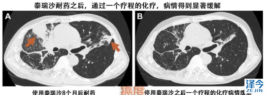 也就是在间隔化疗期间,化疗这一传统治疗措施,将那些对泰瑞沙耐药的基因突变清除掉了,泰瑞沙重新再次对肺部病灶有效。