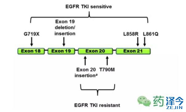 吉非替尼(Gefitinib):易瑞沙(Iressa)。FDA批准一线治疗EGFR基因第19外显子缺失或第21外显子突变的转移性非小细胞肺癌。CFDA批准的适应症为局部晚期或转移性非小细胞肺癌,2003年。