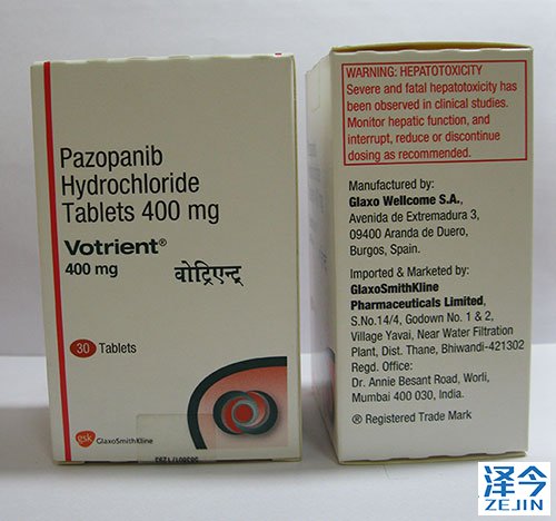 帕唑帕尼是由葛兰素史克公司研发的一种可干扰顽固肿瘤存活和生长所需的新血管生成的新型口服血管生成抑制剂,靶向作用于血管内皮生长因子受体(VEGFR),通过抑制对肿瘤供血的新血管生成而起作用。适用于晚期肾细胞癌(一种在肾小管中发现癌细胞的肾癌类型)、软组织肉瘤(STS)、上皮性卵巢癌和非小细胞肺癌(NSCLC)的治疗。