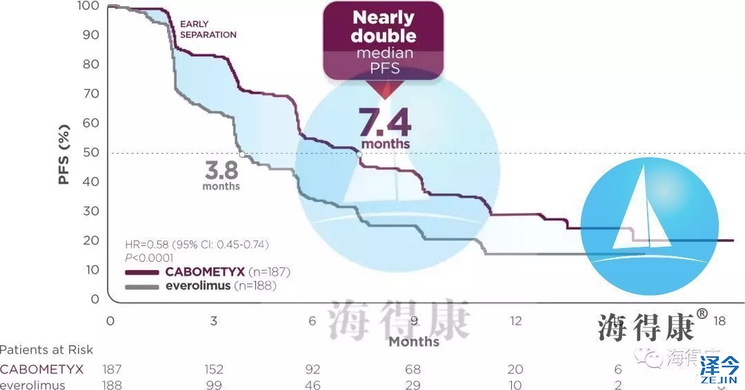 与对照组相比,卡博替尼组的中位无进展生存期是对照组的将近2倍。