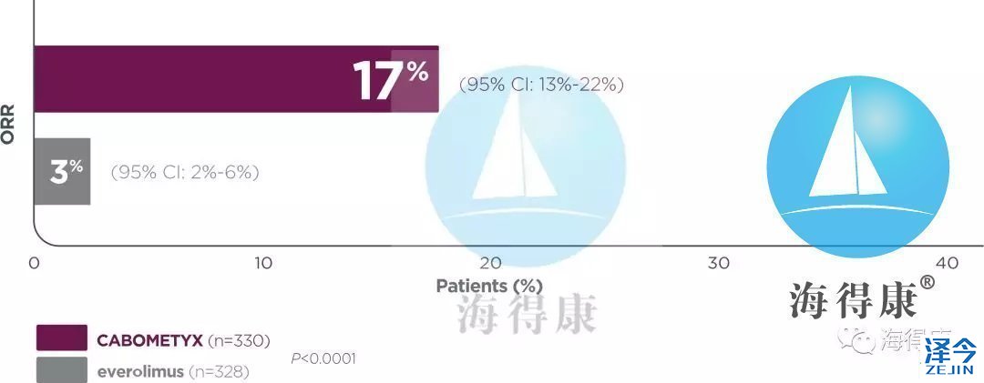 卡博替尼的客观缓解率(ORR)是舒尼替尼的2倍