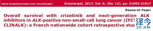 2017年,有研究者在《Oncotarget》上发表的一篇文章对ALK靶向药在非小细胞肺癌患者中的疗效做了回顾性分析: