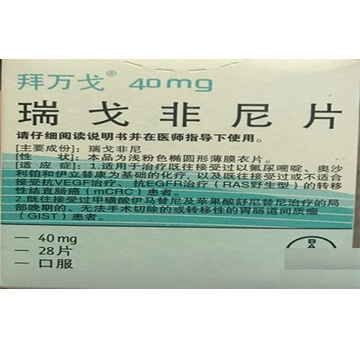 【适 应 症】 瑞戈非尼(Nublexa)是一种激酶抑制剂适用于既往曾用基于氟嘧啶,奥沙利铂-和伊立替康化疗,一种抗-VEGF治疗,和,如KRAS野生型,一种抗-EGFR治疗过的转移结肠直肠癌(C