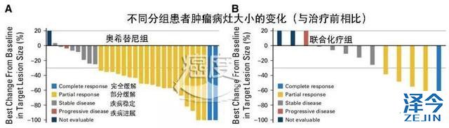 结果显示,奥希替尼AZD9291组的客观缓解率为70%,联合化疗组的客观缓解率为31%。在奥希替尼(AZD9291)组中,2名患者达到了完全缓解的状态,也就是影像学检查没有发现肿瘤病灶,肿瘤“完全消失”。