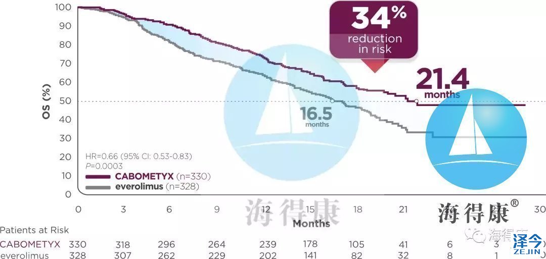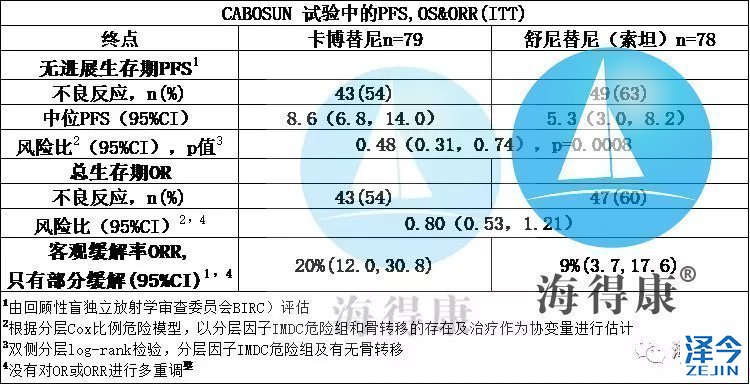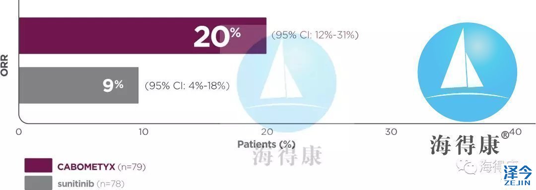 卡博替尼的客观缓解率(ORR)是舒尼替尼的2倍