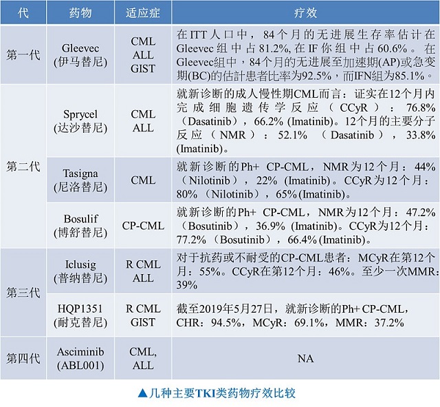 值得一提的是,氟马替尼和耐克替尼分别为我国豪森药业和亚盛药业研发的具有自主知识产权的二代和三代TKI,目前均已处于III期临床研究,上市指日可待。