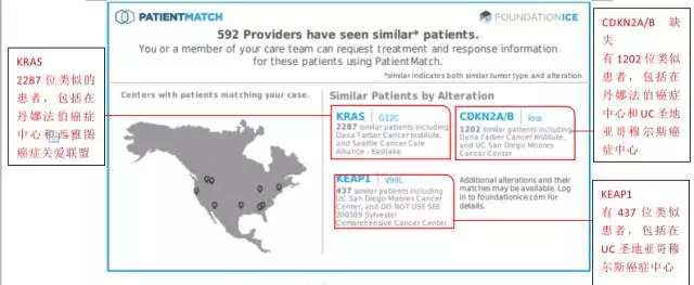 foundation是全球提供治疗指南功能的基因检测。通过强大的临床大数据统计分析能力,能够匹配与患者具有相同突变靶点的患者目前在哪里接受哪些治疗,找到基因突变类似的患者,给患者提供更好的治疗指南借鉴。目前国内任何基因检测机构都不具备如此强大的临床统计分析能力!