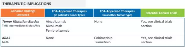 本次基因检测,找到了FDA批准的针对该患者的疗法,并且找到了针对其他类型肿瘤,但癌症患者有可能潜在获益的疗法,找到了相关的临床试验及病情类似的患者。
