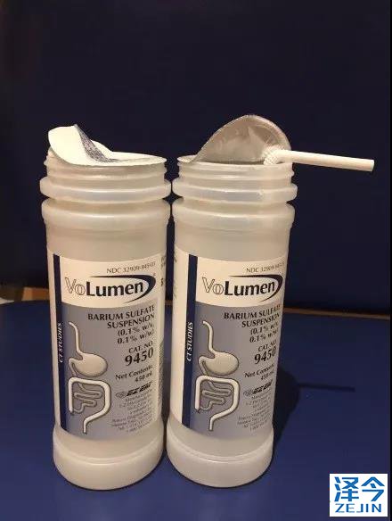 造影前,放射技师做血糖检测,然后需要一小时内喝完两瓶造影剂,技师嘱咐要慢慢喝,为了防止拉肚子。